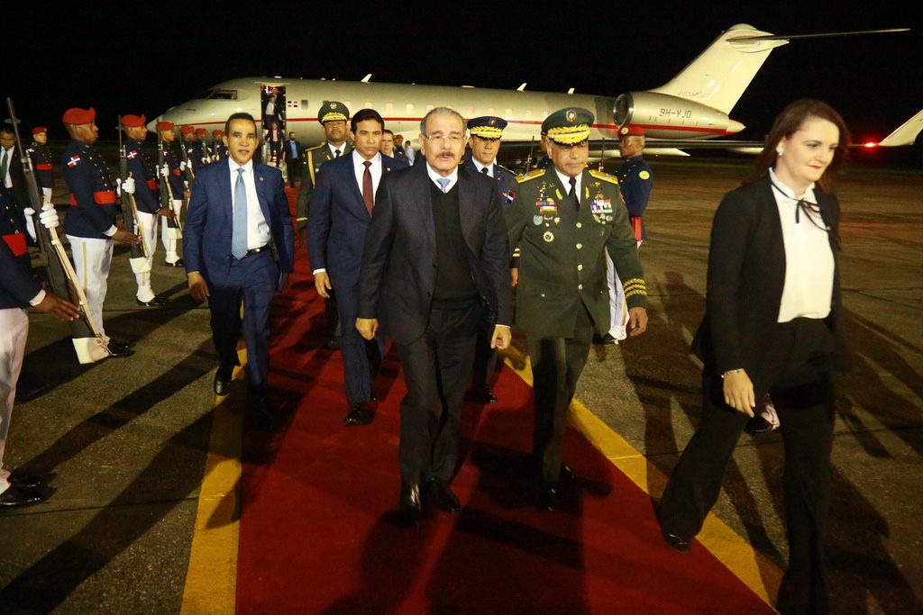 Base Aerea de San Isidro, R. D.-El presidente Dominicano Danilo Medina Sanchez regresó al país procedente de la República Popular China, donde realizó su primera visita de Estado tras el establecimiento de las relaciones diplomáticas entre ambos países.