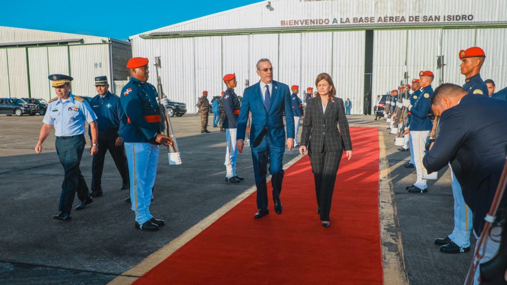 Acompañan al presidente Abinader los ministros de Relaciones Exteriores, Roberto Álvarez; Hacienda; José Manue -Jochi- Vicente, y de Industria, Comercio y MiPymes, Víctor -Ito- Bisonó. También, el jefe del Gabinete Presidencial, Eilyn Beltrán, además de su asistente personal, Mercedes Pichardo.