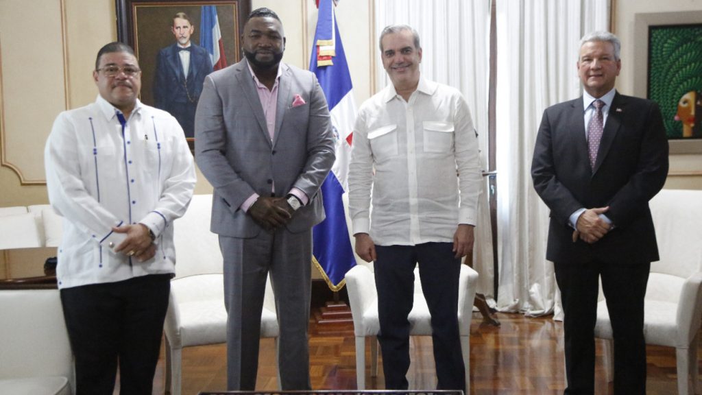 Palacio Nacional, Santo Domingo, R. D. – El Presidente Constitucional de la República Dominicana, Luis Rodolfo Abinader Corona, recibió esta tarde en su despacho al ex-jugador de Grandes Ligas, David Ortiz, quien fue electo el martes por la Asociación de Escritores de Béisbol de América para ingresar al Salón de la Fama del de Cooperstown, el honor más importante de la pelota estadounidense.