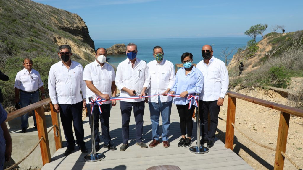 Palacio Nacional, Santo Domingo, R. D. – El Presidente de la República Dominicana Luis Rodolfo Abinader Corona dejó inaugurada una serie de obras que fueron construidas por el Ministerio de Medio Ambiente y Recursos Naturales, con apoyo del Banco de Reservas, en el área de uso público del Parque Nacional El Morro de Monte Cristi. Entre ellas se encuentra un sendero eco-amigable que hará el recorrido más seguro y acogedor.