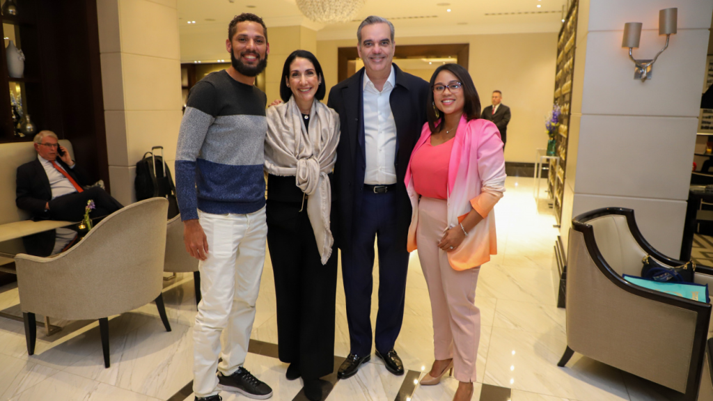 Además de la primera dama, acompañan al presidente Abinader el director del CUSEP y jefe de la escolta, general ERD, Jimmy Arias Grullón; su asistente y jefa del Despacho Presidencial, Lourdes Herrera; Eilyn Beltrán, jefe de Gabinete de la Presidencia, y el jefe de Prensa del presidente, periodista Daniel García Archibald.