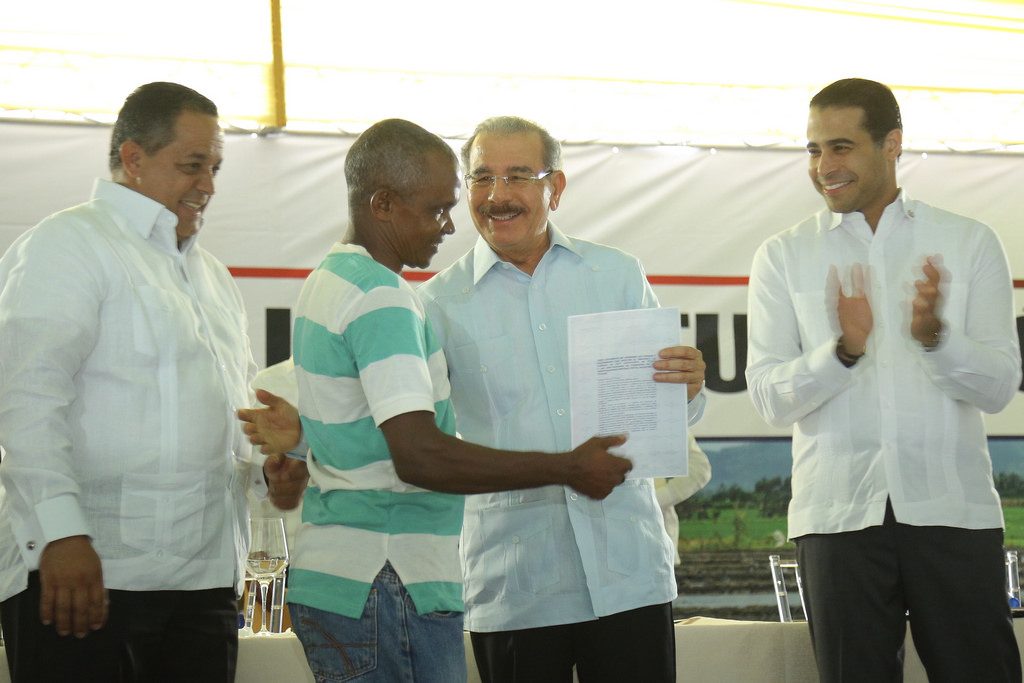 Monte Plata, R. D.-El presidente de la Republica Danilo Medina Sanchez entregó esta tarde 550 certificados de títulos definitivos de propiedad a 445 familias de esta provincia, en cumplimiento a un compromiso asumido en la Visita Sorpresa 194.