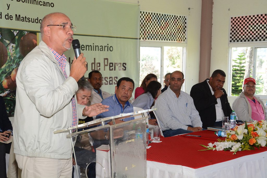 Constanza, La Vega, R. D.–Productores de La Culata, Cruz de Cuaba, Tireo y La Descubierta participaron en un seminario sobre cultivo de peras impartido por el Instituto Agrario Dominicano (IAD) y una comisión de expertos de la Alcaldía de Matsudo, Japón.