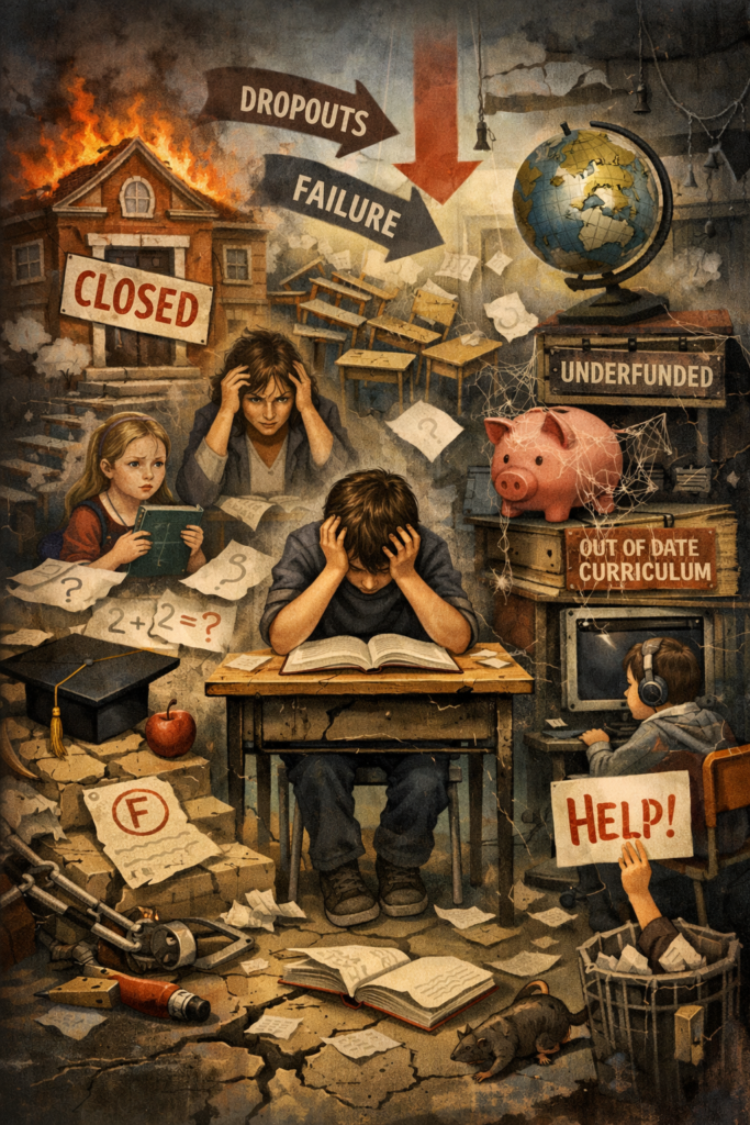 La educación pública en Puerto Rico no está en declive. Está en colapso. Y mientras los políticos discuten cifras y promesas vacías, miles de estudiantes boricuas pasan de grado sin las destrezas fundamentales que necesitan para sobrevivir, mucho menos prosperar, en el siglo XXI.