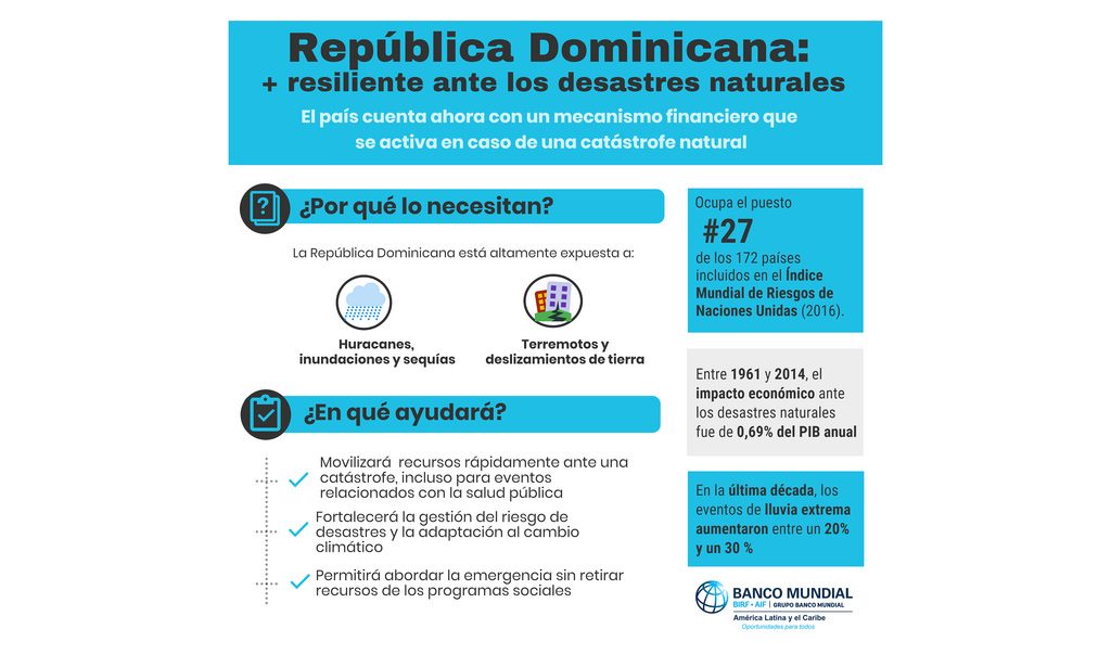 Mientras que en República Dominicana y Haití, el Banco ha estado trabajando de manera estrecha junto a agencias nacionales y socios en desarrollo. La finalidad es mejorar el nivel de preparación y la rapidez de la respuesta.