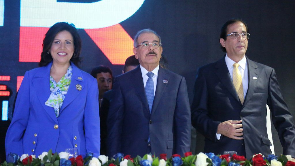 Al presidente de la República le acompañaron en la mesa principal, además de la vicepresidenta de la República, Margarita Cedeño, los ministros de la Presidencia, Gustavo Montalvo; y Administrativo de la Presidencia, José Ramón Peralta.