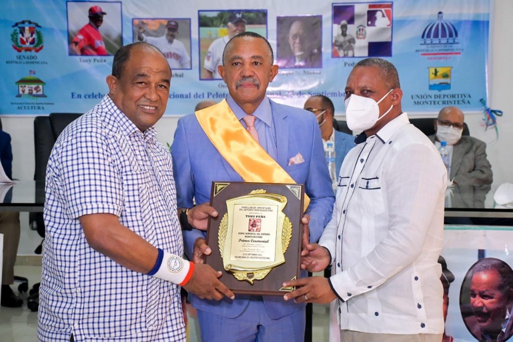 De igual manera Tony Peña recibió un merecido reconocimiento de manos del senador Ramón Pimentel, en el que reconoce la calidad de pelotero y ciudadano que ha “demostrado que se puede ser grande y también ser humilde, honesto, trabajador y responsable”.