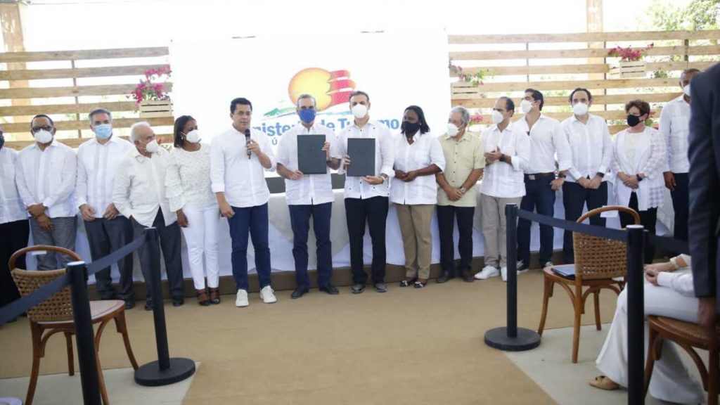 El acto de firma estuvo encabezado por el presidente Abinader, en compañía del ministro de Turismo y otros funcionarios.