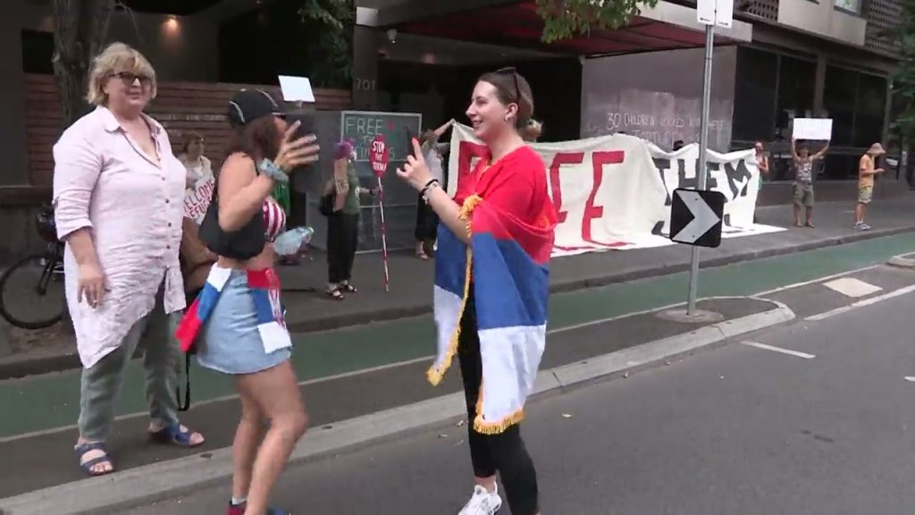 Seguidores del tenista serbio Djokovic se han concentrado frente al hotel donde permanece aislado, después de que el gobierno de Australia impediese el ingreso al país del tenista, decisión recurrida por sus abogados y de la que están a la espera judicial. (Fuente: Ruptly)
