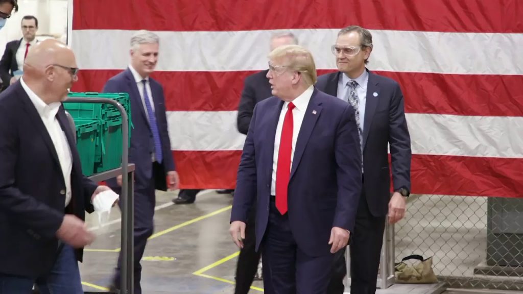 A principios de mayo, Trump visitó las instalaciones en Arizona de la empresa Honeywell, que fabrica mascarillas N95, sin hacer uso de ninguna de ellas. Se paseó por el edificio con la cara descubierta, aunque llevaba unas gafas protectoras transparentes.