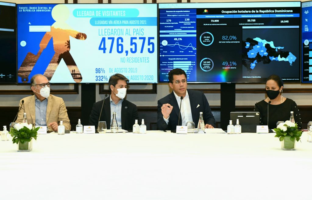 Así lo reveló el ministro de Turismo, David Collado, al dar a conocer los resultados del comportamiento del sector en el mes de agosto, donde se reportó la llegada de un total de 476, 575 no residentes, lo que muestra una recuperación del 96% del flujo recibido antes de la pandemia del Covid-19, (puntualmente agosto 2019), y de 332% respecto a las cifras de agosto 2020. Se espera que para septiembre se superen los registros del 2019.